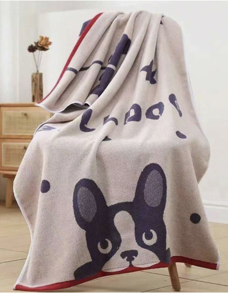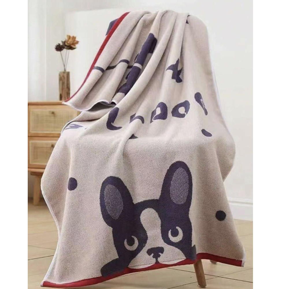 Adoptez cette jolie serviette beige à l'effigie du Bouledogue Français !